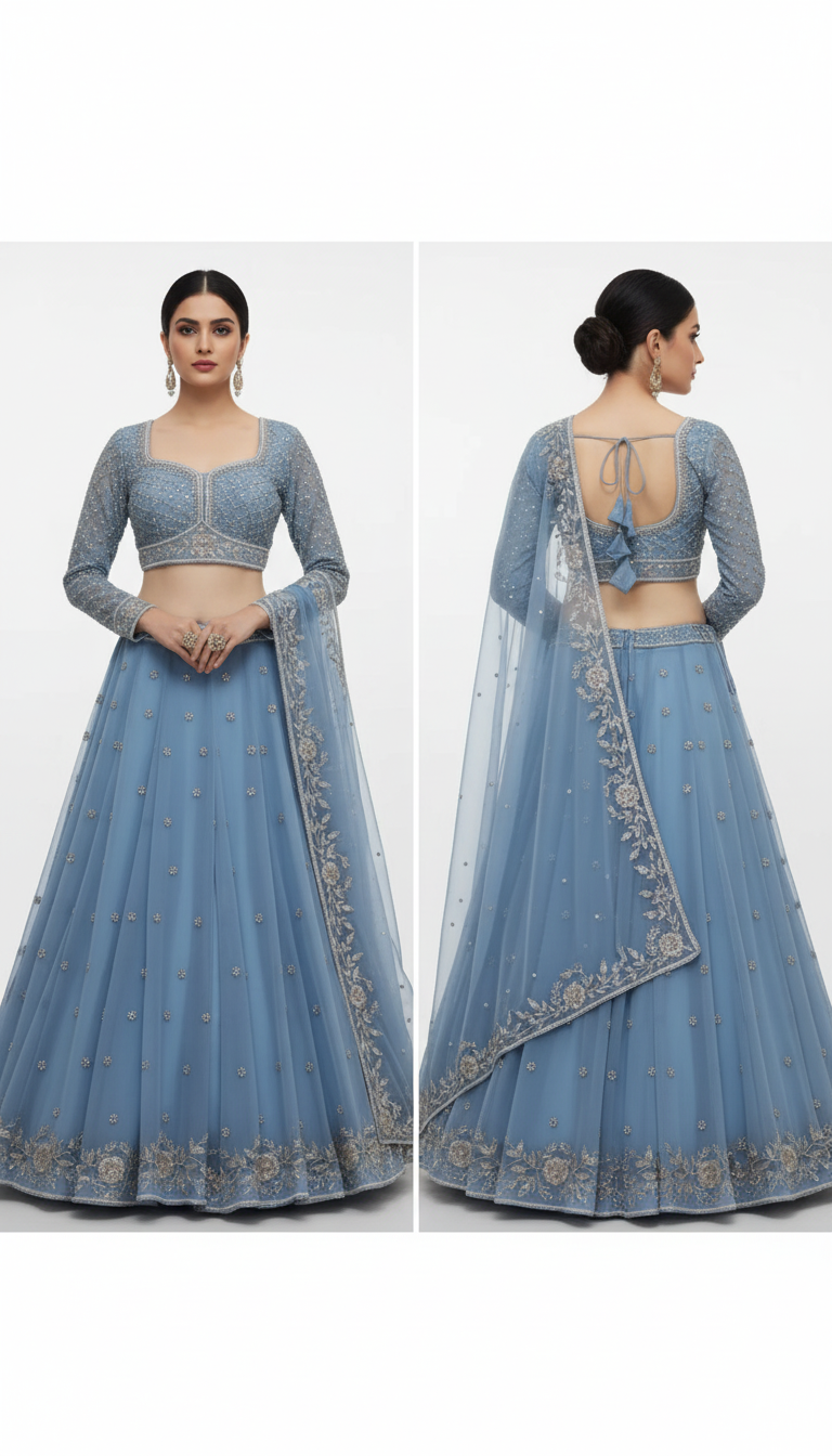 Semi-Stitched Lehenga: Allows perfect tailoring for body fit and flare.